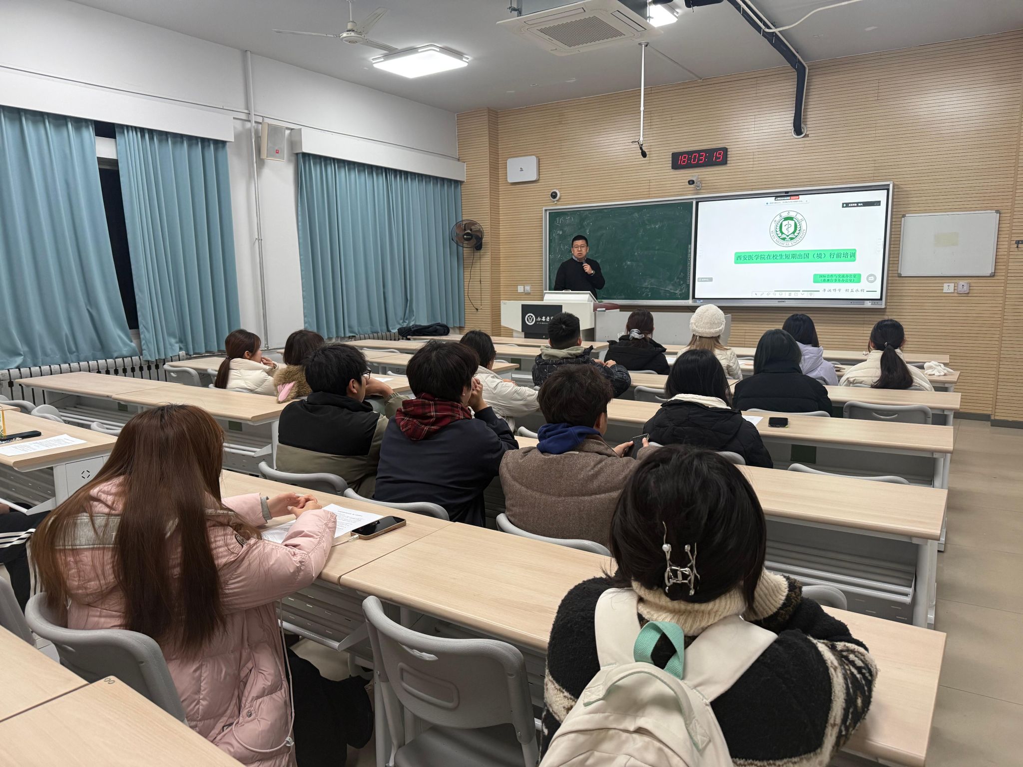 培训会上,交流科老师结合自身经验,通过多个真实案例,生动讲解了在国(境)外学习生活中可能遇到的常见问题及应对策略,提醒同学们保障人身安全,遵守法律法规,树立良好形象。随后,围绕行前准备、境外安全、思想纪律和注意事项四个方面进行了系统讲解,重点强调了护照管理、行李准备、保险购买、紧急联络机制等关键环节。